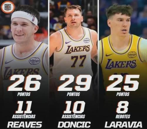 东契奇贡献29分11板10助三双,里夫斯26分11助两双到手,拉拉维亚25分进账,合计80分。
